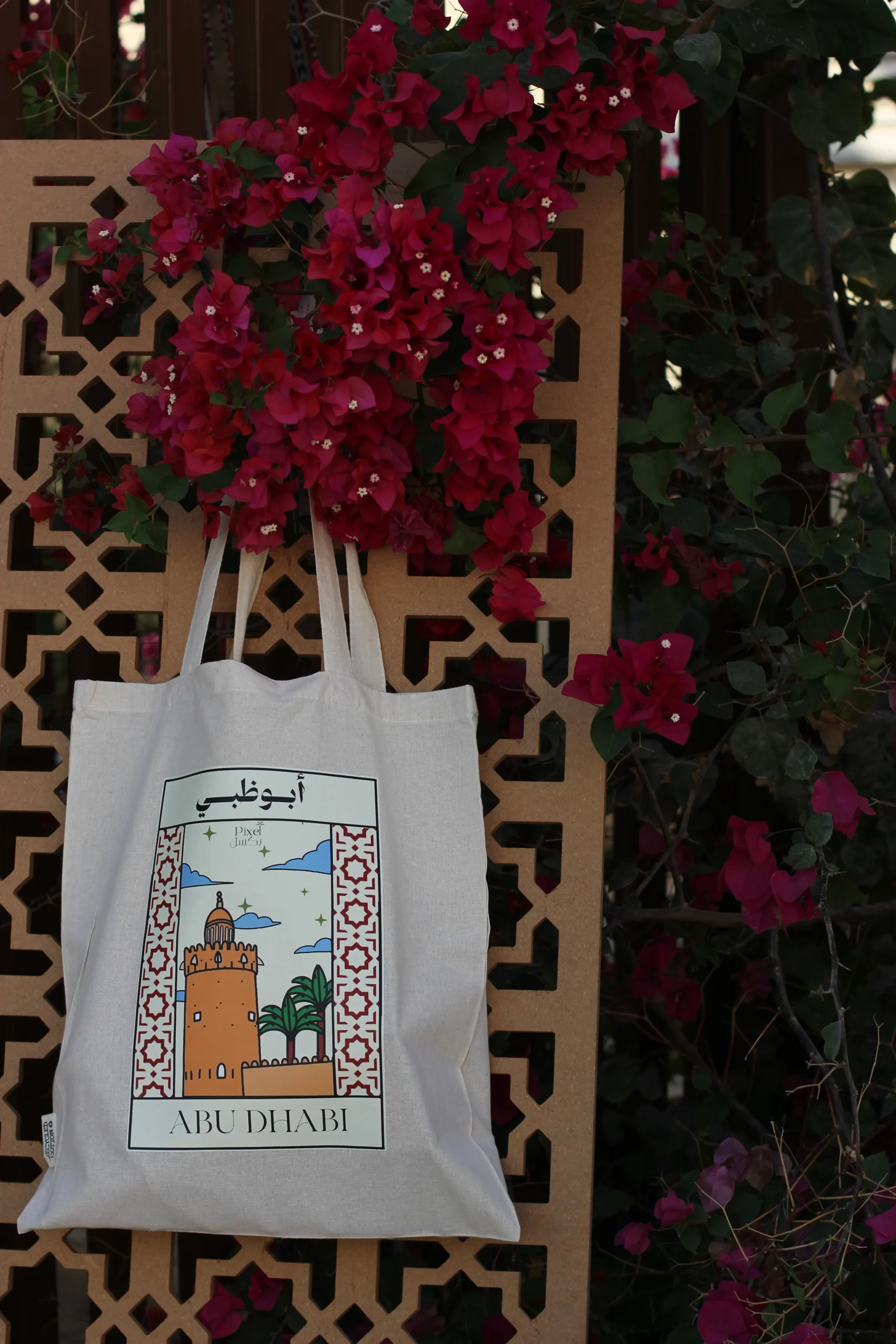 حقيبة قماشية مستدامة مصنوعة من قطن مُعاد تدويره، بتصميم قصر الحصن